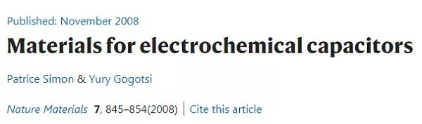 該文2008年由美國(guó)德雷塞爾大學(xué)的Yury Gogotsi和法國(guó)圖盧茲第三大學(xué)的Patrice Simon教授發(fā)表于Nature Materials,是超級(jí)電容器特別是非對(duì)稱(chēng)超級(jí)電容器的開(kāi)山之作。截至2021年2月17日,該文累計(jì)被引11,312次。