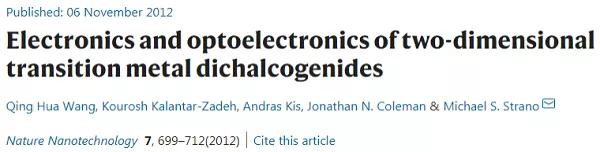 該文2011年由瑞士洛桑聯(lián)邦理工學(xué)院A. Kis教授等人發(fā)表于Nature Nanotechnology。截至2021年2月17日,該文累計(jì)被引9,140次。
