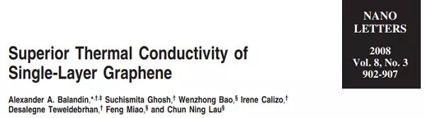 該文2008年由美國(guó)加州大學(xué)河濱分校Alexander A. Balandin教授等人發(fā)表于Nano Letters。截至2021年2月17日,該文累計(jì)被引8,652次。