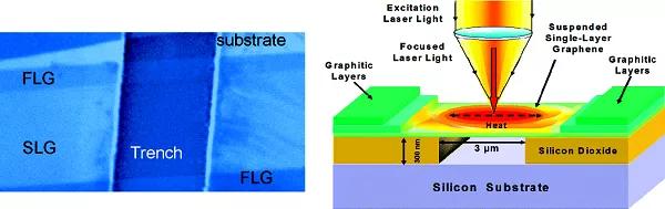 此文中,作者報(bào)道了借助共聚焦顯微拉曼光譜進(jìn)行的懸浮單層石墨烯中導(dǎo)熱的首次實(shí)驗(yàn)研究。根據(jù)拉曼G峰值頻率對(duì)激發(fā)激光功率的相對(duì)關(guān)系,作者計(jì)算出單層石墨烯的導(dǎo)熱系數(shù)室溫值高達(dá)5300 W/mK。極高的熱導(dǎo)率值表明,石墨烯在熱傳導(dǎo)方面可以勝過(guò)碳納米管(CNTs)。石墨烯的優(yōu)異導(dǎo)熱性能對(duì)于其可能的電子應(yīng)用是有益的,并表明石墨烯可作為應(yīng)用于熱管理的優(yōu)異材料。已發(fā)現(xiàn)的石墨烯出色的熱學(xué)性能說(shuō)明石墨烯可作為光電,光子學(xué)和生物工程學(xué)中的熱管理材料,這拓寬了其應(yīng)用范圍。
