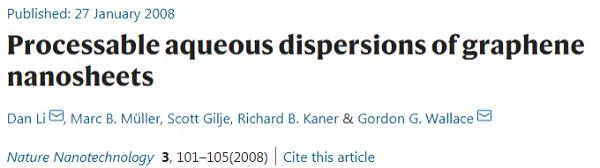 該文在2008年由澳大利亞臥龍崗大學(xué)Gordon G. Wallace教授和Dan Li教授等人發(fā)表于Nature Nanotechnology。截至2021年2月17日,該文累計(jì)被引7,217次。