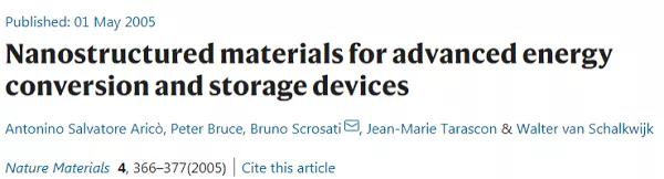 該文在2005年由羅馬薩皮恩扎大學(xué)Bruno Scrosati教授等人發(fā)表于Nature Materials。截至2021年2月17日,該文累計(jì)被引6,958次。