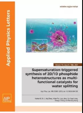 過渡金屬磷化物(TMPs)由于低廉的價格和優(yōu)異的電催化活性受到越來越多的關(guān)注,被認(rèn)為是替代貴金屬材料的理想材料。近年來,一維納米線/二維納米片復(fù)合材料的合成引起了人們的興趣,因為基于2D/1D 磷化物的異質(zhì)結(jié)構(gòu)能夠增加活性位點的數(shù)量和加速載流子遷移率,表現(xiàn)出比任何單一成分更顯著的性能。然而由于二維和一維納米結(jié)構(gòu)的生長機制不同,大多數(shù)二維/一維異質(zhì)結(jié)構(gòu)通常是采用多步驟方法下合成,或存在模板、封蓋劑的情況下形成。因此,在沒有模板輔助的情況下,開發(fā)一種簡單和可控的合成策略來設(shè)計2D/1D異質(zhì)結(jié)構(gòu)仍然是一個挑戰(zhàn)。近日,湖南大學(xué)黃桂芳和黃維清教授(通訊作者)、碩士生畢浩浩和博士生李波(共同第一作者)提出了一種簡單合成策略——基于原位過飽和觸發(fā)維度和相控生長機制——設(shè)計制備了垂直排列的2D CoFeP 納米片/1D Fe-CoP 納米線(2D/1D CoFeP NSs@Fe-CoP NWs)異質(zhì)結(jié)構(gòu)。研究人員發(fā)現(xiàn)原位制備合成的2D/1D CoFeP NSs@Fe-CoP NWs 由垂直取向的2D納米片與大量的1D納米線構(gòu)成,提供了豐富的延伸邊緣位點和高度暴露的活性位點,而且良好的2D-1D界面和高度不連續(xù)空間開放式結(jié)構(gòu)能夠促進(jìn)電荷轉(zhuǎn)移和氣泡的演化。由于這些優(yōu)異的特性,該異質(zhì)結(jié)構(gòu)與FeP納米片和CoP納米線相比表現(xiàn)出顯著的HER和OER性能。此外在電池電壓為1.62 V時,該催化劑實現(xiàn)全解水電流密度10 mA cm-2。該工作為設(shè)計多功能和高活性的非貴金屬催化劑提供了一種簡便以及可擴展的策略。相關(guān)結(jié)果已在知名期刊Applied Physics Letters (DOI:10.1063/5.0041080)上以封面論文發(fā)表,題為“Supersaturation-triggered synthesis of 2D/1D phosphide heterostructures as multi-functional catalysts for water splitting”