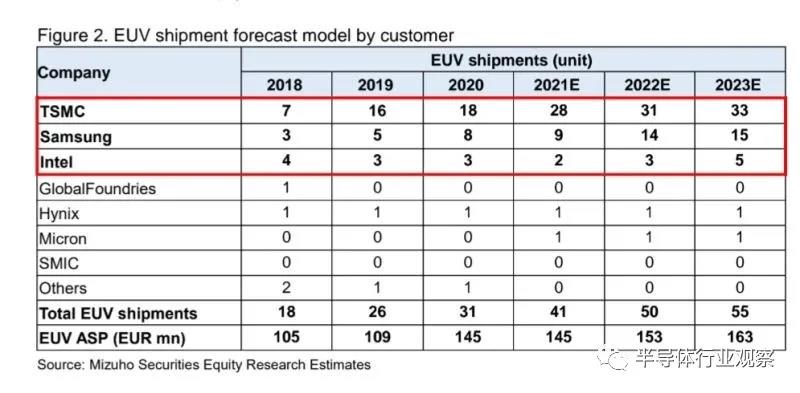 顯然,先進(jìn)制程芯片龍頭臺(tái)積電對(duì)EUV光刻機(jī)的需求量最大,可以與英特爾做一下比較,到2023年,預(yù)計(jì)臺(tái)積電共擁有133臺(tái)EUV光刻機(jī),而英特爾為20臺(tái)。