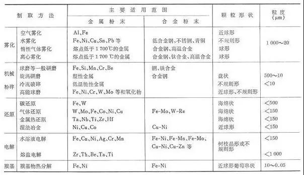 金屬粉末制取方法的特點和適用范圍