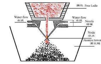 直接擊碎液體金屬或合金而制得粉末的方法稱之為霧化法,是生產規(guī)模僅次于還原法的、應用較廣泛的金屬粉末制取法。霧化粉末具有球形度高、粉末粒度可控、氧含量低、生產成本低以及適應多種金屬粉末的生產等優(yōu)點,已成為高性能及特種合金粉末制備技術的主要發(fā)展方向,但生產效率低,超細粉末的收得率不高,能耗相對較大等缺陷限制了霧化法的應用。