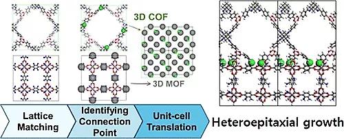 共價(jià)-有機(jī)框架(COFs)是多種能源/環(huán)境應(yīng)用中具有前途的候選材料,但與金屬-有機(jī)框架(MOFs)等其他多孔材料相比,這些材料更難合成。這項(xiàng)研究開發(fā)了一種使用MOFs作為襯底的計(jì)算篩選算法,以便在理論上實(shí)現(xiàn)三維COFs(3D COFs)的異質(zhì)外延生長。該算法在原子/分子水平上詳細(xì)描述了MOF@COF的界面,以便使用自下而上的方法構(gòu)筑3D COFs。最終,該算法產(chǎn)生了19對(duì)適合在MOF表面異質(zhì)外延生長3D COFs的MOF@COF候選材料。