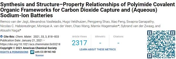 4. Chem.Mater.:聚酰亞胺共價(jià)有機(jī)框架的合成及在CO2捕獲和水系鈉離子電池應(yīng)用中的結(jié)構(gòu)-性能關(guān)系