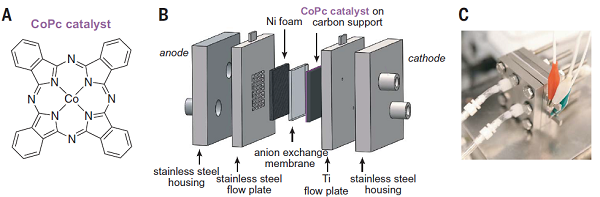 圖8 含有鈷基分子電催化劑的薄膜液流反應(yīng)器[8]