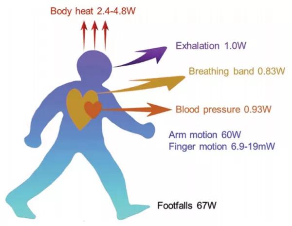 低品位熱量(低于373開爾文)是普遍存在的,但由于當(dāng)前的回收技術(shù)不具有成本效益,因此大多被浪費了。液態(tài)熱電偶(LTC)是一種廉價且可擴展的熱電設(shè)備,如果其卡諾相對效率(hr)達(dá)到5%,這在商業(yè)上可用于收集低等級的熱能,這對于實驗而言是一項具有挑戰(zhàn)性的指標(biāo)。文章使用了熱敏性結(jié)晶和溶解過程,以誘導(dǎo)氧化還原離子的持續(xù)濃度梯度,塞貝克系數(shù)大大提高(每開爾文?3.73毫伏),并抑制了LTC的熱導(dǎo)率。結(jié)果,對于室溫附近的LTC,文章獲得了11.1%的高小時。這個設(shè)備演示為經(jīng)濟高效的低品位熱量收集提供了希望。Thermosensitive crystallization-boosted liquidthermocells for low-grade heat harvesting.(Science, 2020, DOI:10.1126/science.abd6749)5.Adv. Mater.:用于人體能量收集的基于纖維的能量轉(zhuǎn)換設(shè)備