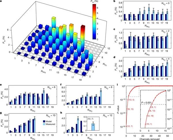 圖3 測量的產(chǎn)物狀態(tài)分布和與統(tǒng)計(jì)理論的比較