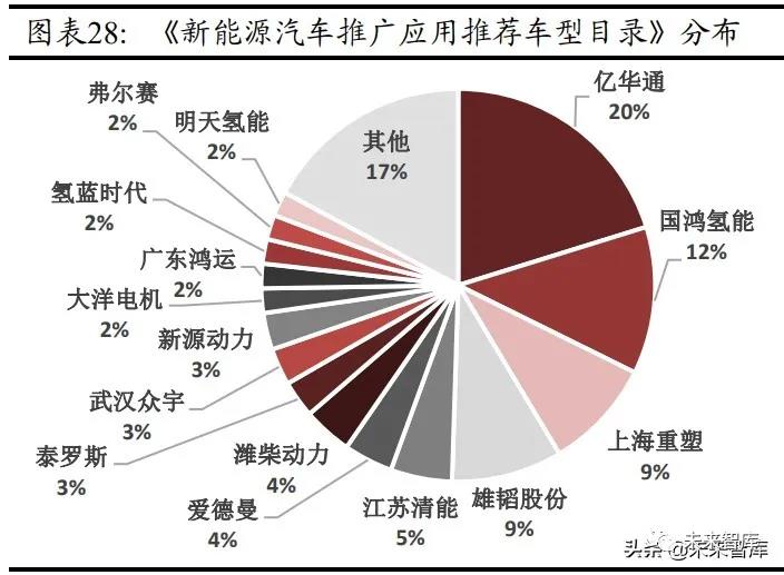 氫燃料電池汽車產(chǎn)銷數(shù)據(jù)的增長潛力有望在下半年爆發(fā)。因?yàn)闅淙剂想姵厝a(chǎn)業(yè)鏈 一般在第一、二季度與下游廠商商討技術(shù)方案、制定商務(wù)合同、訂單備貨,第三季度 采購生產(chǎn)第四季度確認(rèn)交付。若“十城千輛”政策在三季度能順利落地,2021年氫燃 料電池汽車有突破1萬輛的潛力。從車型來看,氫燃料客車與重卡將占據(jù)2021年氫燃 料電池汽車市場的主要份額。這主要是由于2021年我國將為2022年北京冬奧會(huì)做準(zhǔn) 備,我們預(yù)計(jì)氫燃料重卡將在2021年下半年開始逐步落地進(jìn)行示范運(yùn)營。